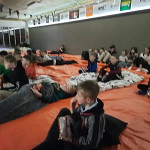 Op de mat hebben we een heerlijke chillplek gemaakt en met zn allen de film De Dojo gekeken.